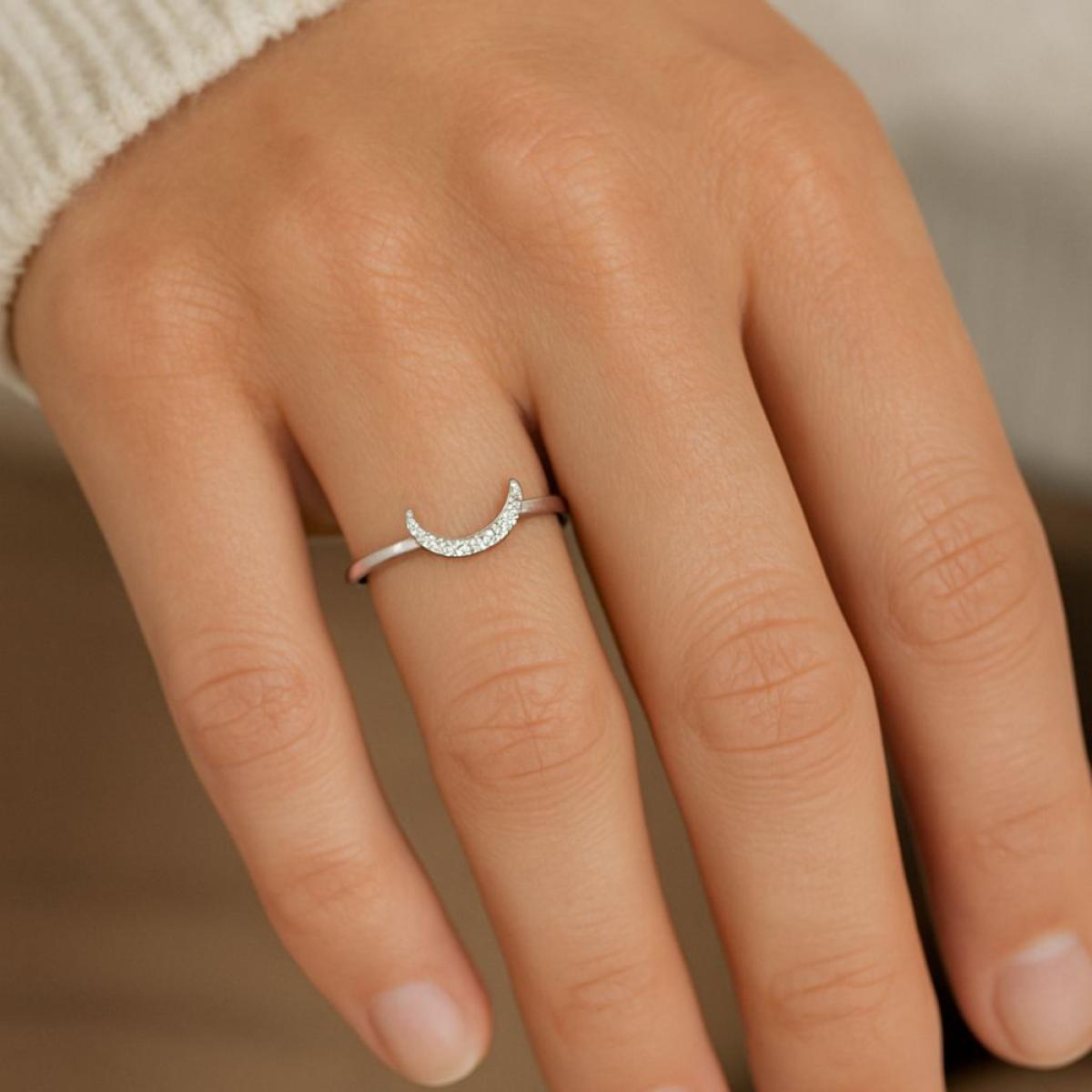 Anel em Prata 925 legítima, com aro delicado e design central em formato de lua crescente, totalmente cravejada com zircônias cristal que proporcionam brilho intenso e sofisticado. Uma joia cheia de significado, simbolizando mistério, feminilidade e renovação, perfeita para compor looks modernos e elegantes ou presentear alguém especial.