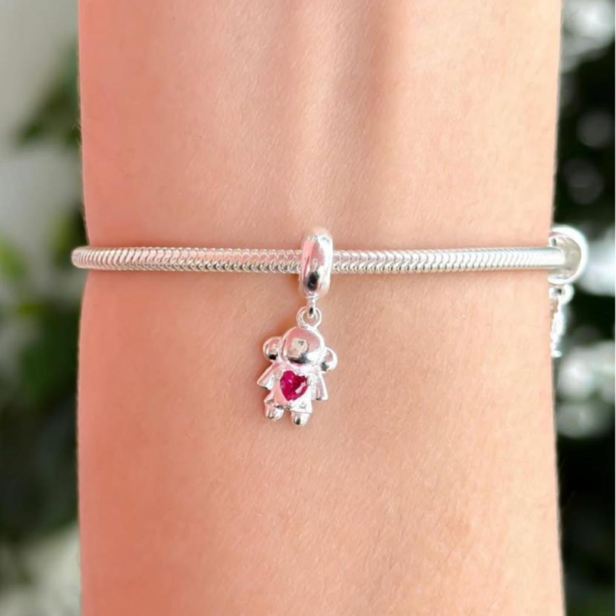 Berloque em Prata 925 legítima, com design delicado de menina estilizada, simbolizando carinho, inocência e afeto familiar. Uma peça encantadora e cheia de significado, ideal para representar filhas, sobrinhas ou netas queridas, tornando a pulseira ainda mais especial e personalizada.