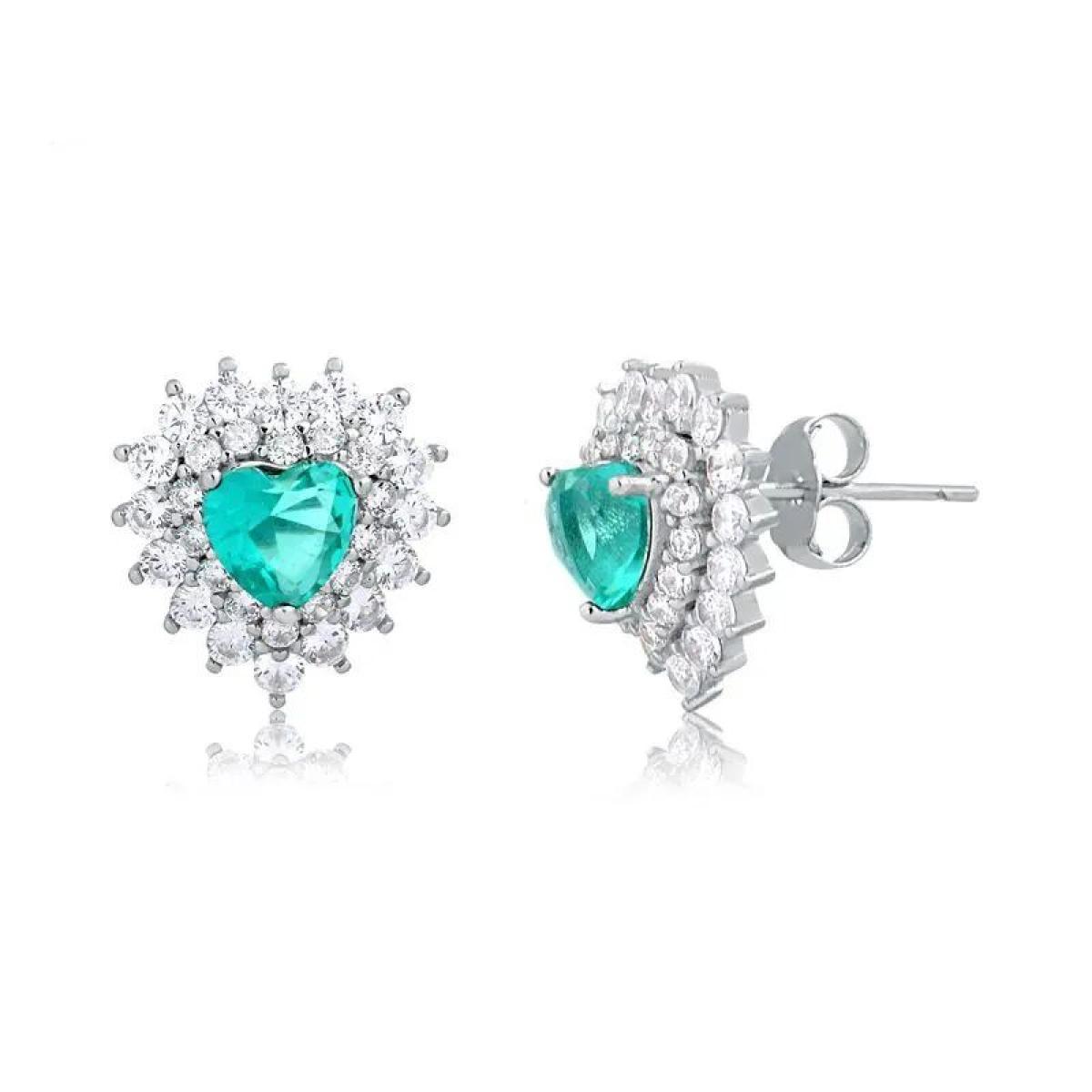 Brinco Coração Verde Cravejado em Prata 925 – Romantismo com Toque de Cor