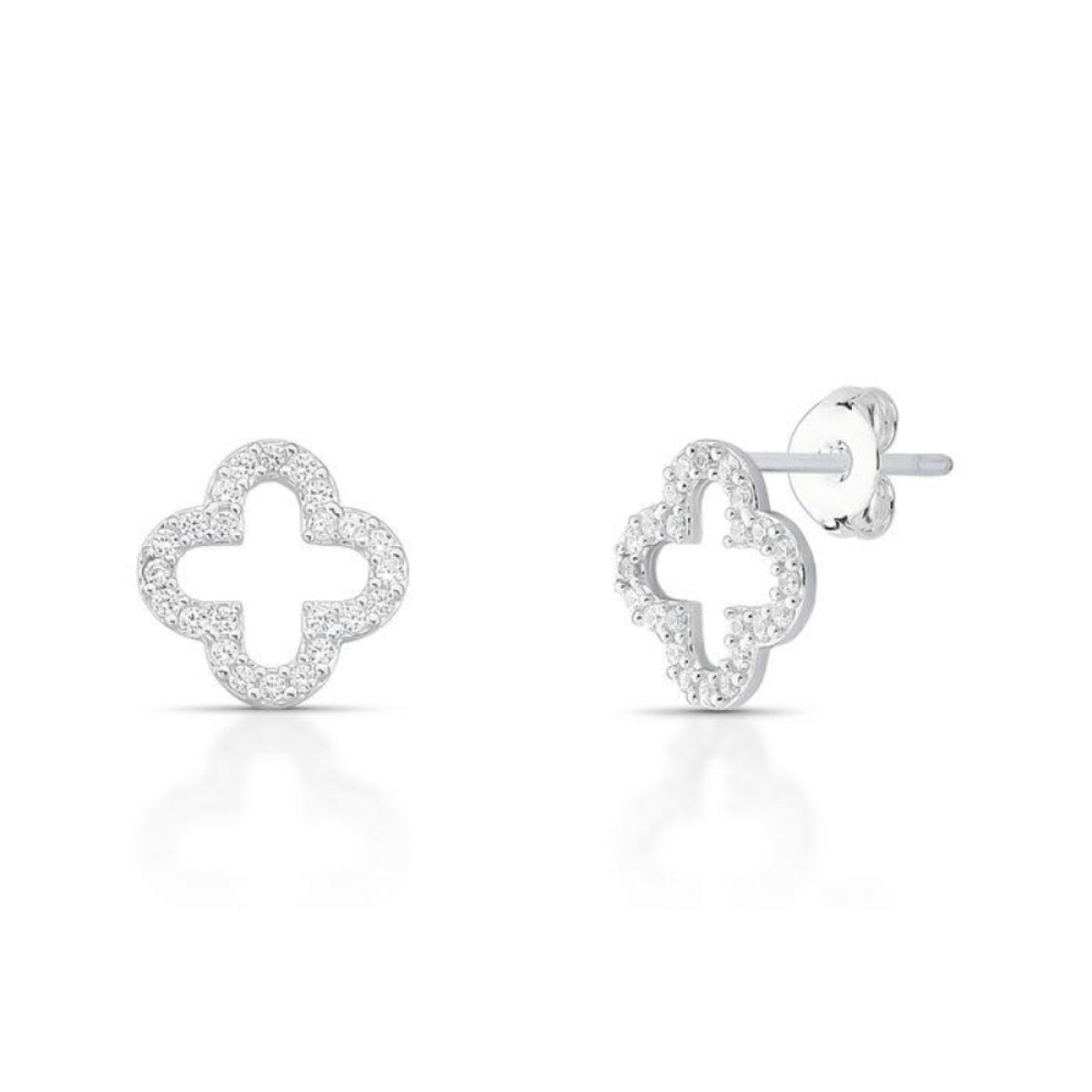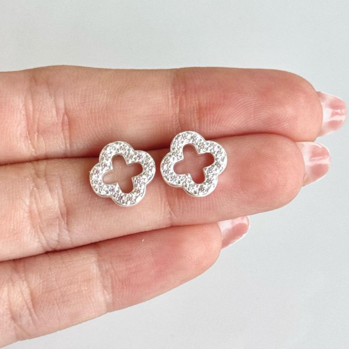 Brinco em Prata 925 legítima, com design delicado de trevo de quatro folhas vazado, todo cravejado com zircônias cristal, que refletem brilho intenso e sofisticado. Além da elegância, o trevo carrega o simbolismo de sorte, fé, amor e esperança, tornando a joia especial e significativa. Uma peça charmosa e versátil, perfeita para compor looks modernos e elegantes.