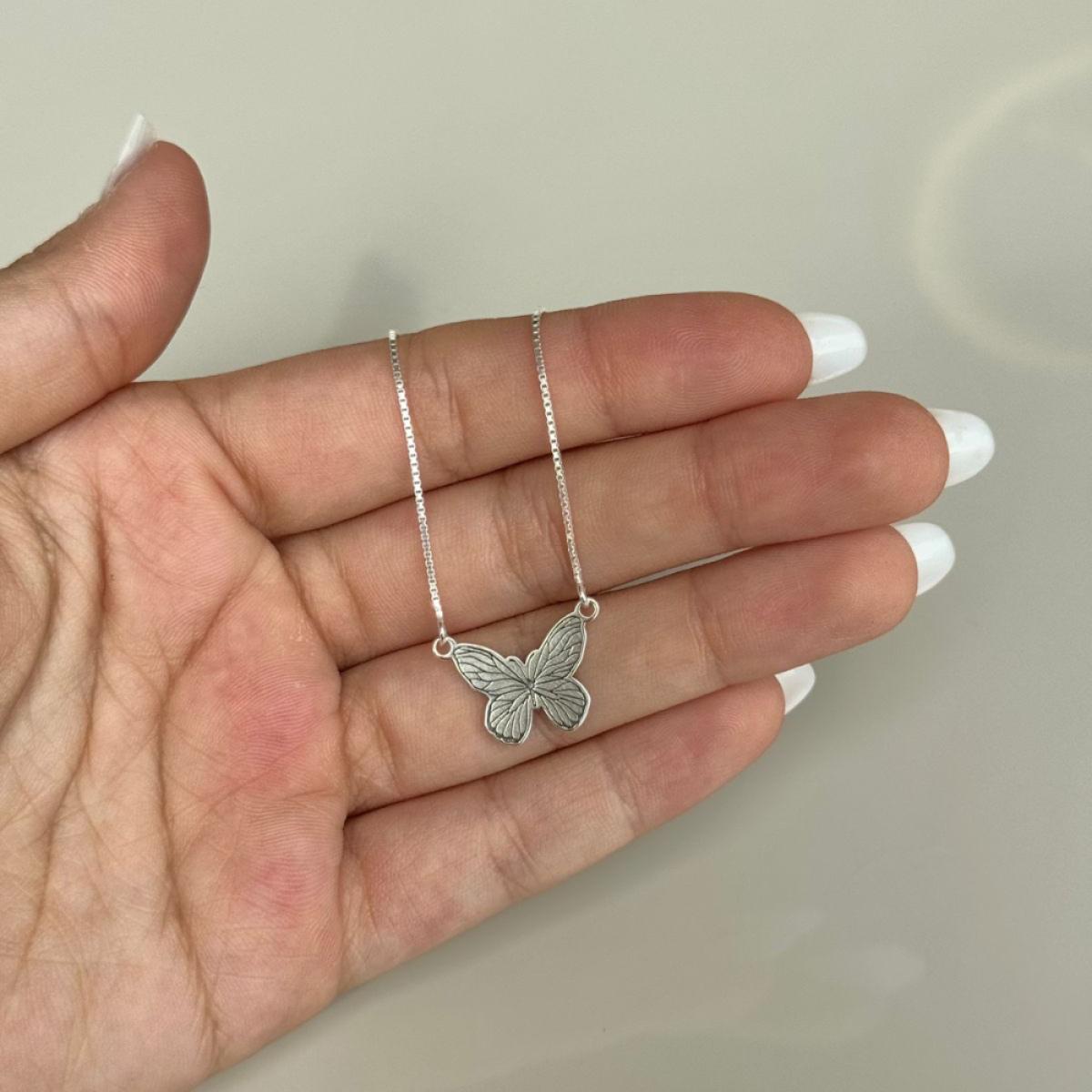 Gargantilha em Prata 925 legítima, com corrente delicada e pingente em formato de borboleta envelhecida, com acabamento escurecido que realça os detalhes das asas e traz um ar vintage e sofisticado. A peça transmite liberdade, transformação e delicadeza, sendo perfeita para compor produções cheias de estilo e personalidade.