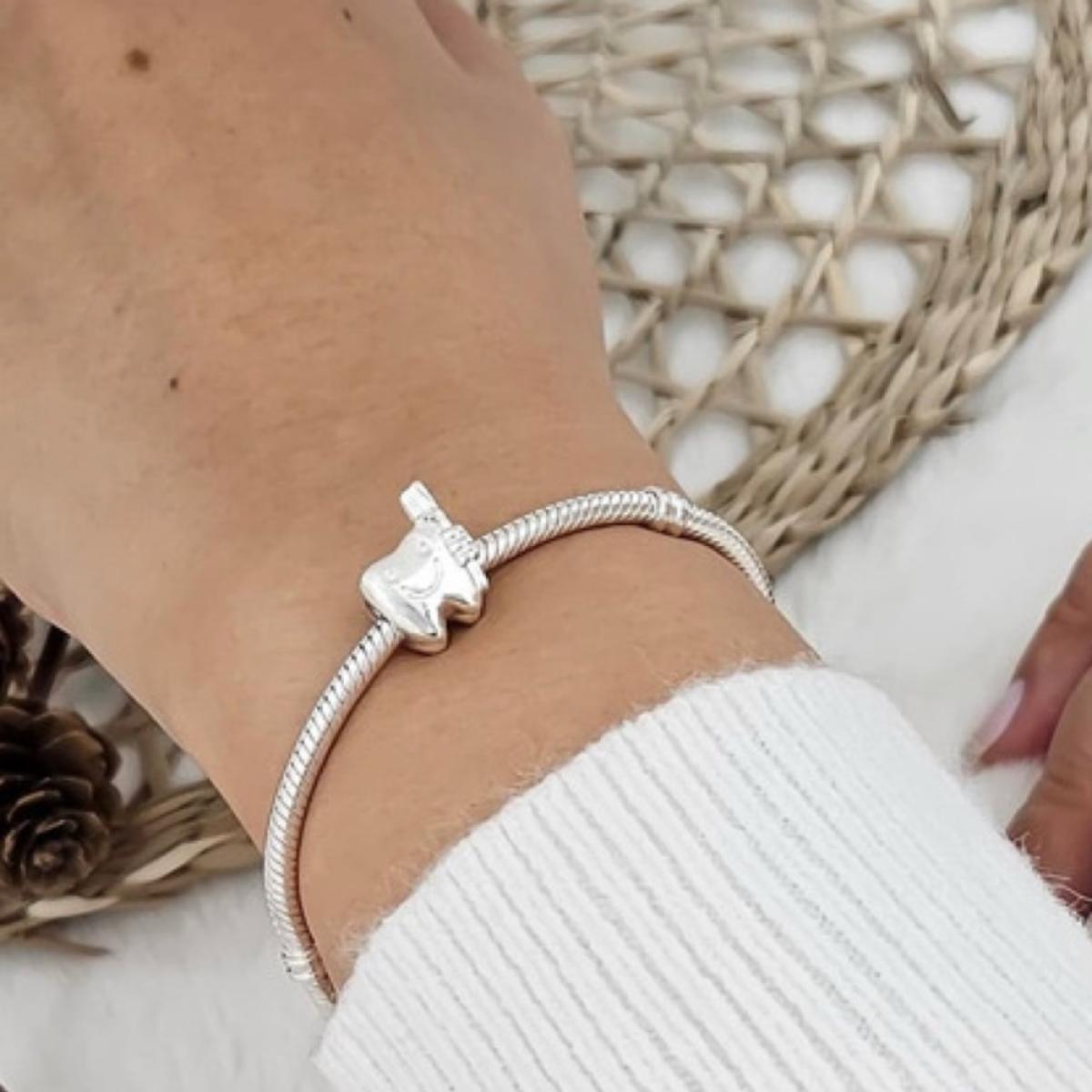 Berloque em Prata 925 legítima, com design em formato de dente, símbolo da odontologia, perfeito para estudantes, profissionais da área e apaixonados pela profissão. Uma peça charmosa e cheia de significado, que representa cuidado, saúde e dedicação. Ideal para personalizar pulseiras e eternizar a paixão pela odontologia em cada detalhe.