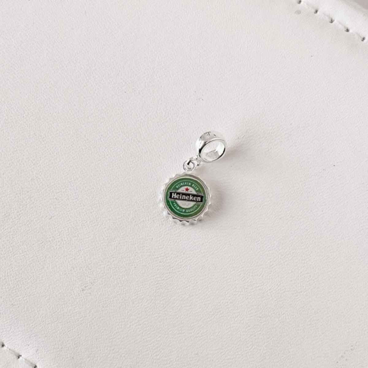 Berloque em Prata 925 legítima, em formato de tampa de cerveja estilo Heineken, um acessório divertido e cheio de personalidade. Representa momentos de descontração, celebração e alegria entre amigos. Uma joia criativa e moderna, perfeita para personalizar pulseiras e destacar o estilo autêntico de quem aprecia peças diferenciadas.