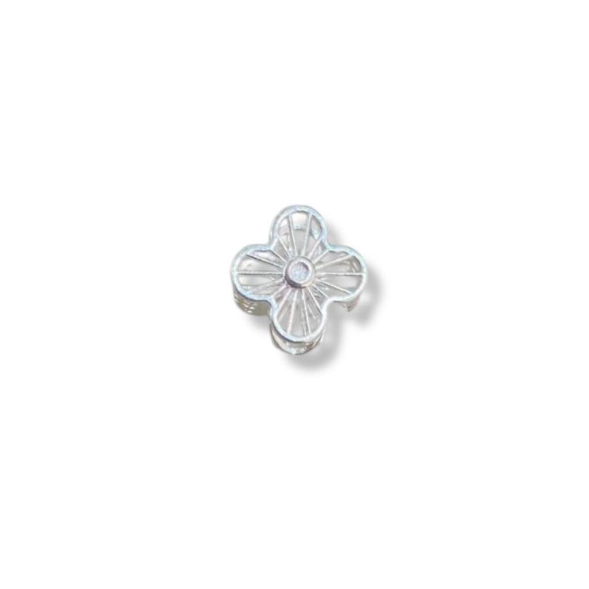 Berloque separador em Prata 925 legítima, com design delicado de trevo vazado, símbolo de sorte, esperança e prosperidade. Uma joia especial e significativa, perfeita para organizar berloques na pulseira, adicionando charme e um toque de boas energias ao visual.