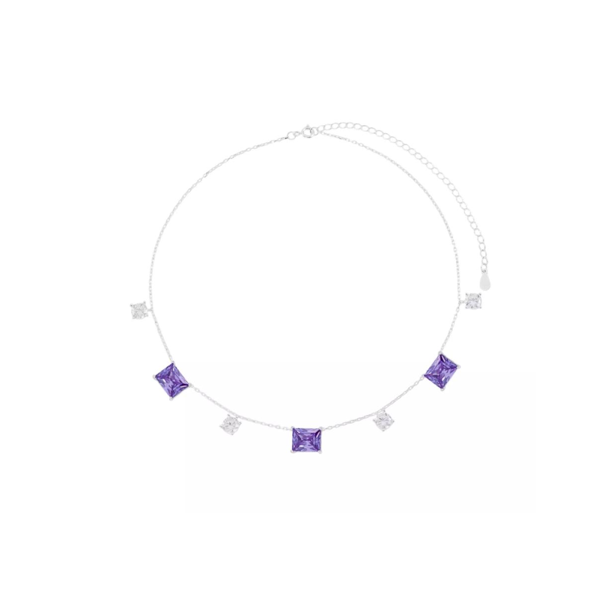 Choker Celebrating Lavanda em Prata 925 legítima — uma joia moderna e elegante que combina delicadeza e sofisticação. Seu design fino e ajustável traz pedras em tom lavanda que refletem suavidade e feminilidade, perfeita para iluminar o colo com um toque sutil de cor. Ideal para compor mix de colares ou usar sozinha em looks elegantes.
