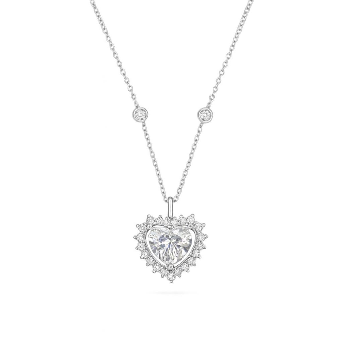 Colar em Prata 925 legítima, com corrente delicada e pingente em formato de coração cravejado com zircônias cristal, que refletem brilho intenso e sofisticado. O design romântico e elegante torna a peça atemporal, perfeita para simbolizar amor e delicadeza em qualquer ocasião, seja no uso diário ou em momentos especiais.