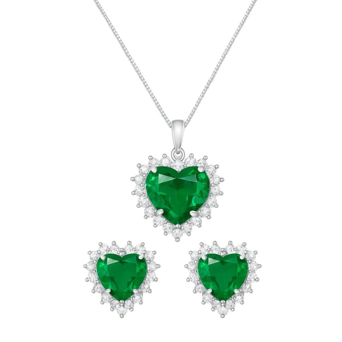 O Conjunto Coração Verde Cravejado da UZE Pratas traz a união perfeita entre romantismo e sofisticação. Produzido em Prata 925 legítima, o conjunto é composto por colar e brinco com pingentes em formato de coração, todos cravejados com zircônias verde-esmeralda que entregam brilho intenso e um charme único.