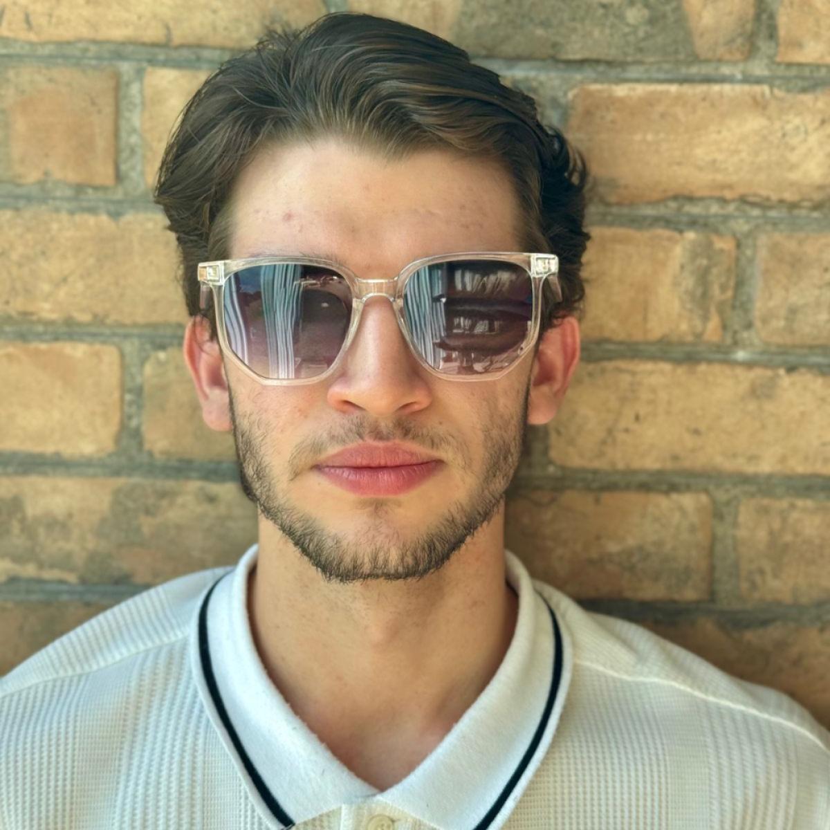 Com armação transparente e lentes escuras, ele traz um visual sofisticado e versátil, perfeito para qualquer ocasião. As lentes com proteção UV garantem segurança e conforto visual durante todo o dia.