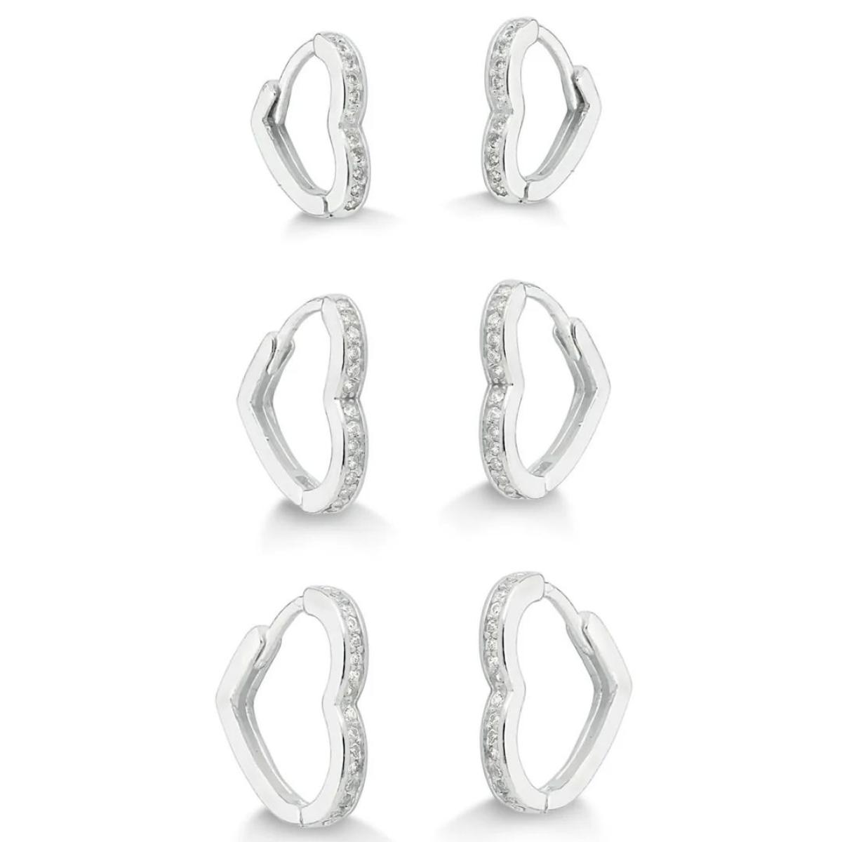 Romântico e sofisticado, este trio de argolas é adornado com delicados corações cravejados em zircônias, garantindo brilho e elegância em cada detalhe. Produzido em Prata 925 legítima com garantia vitalícia.